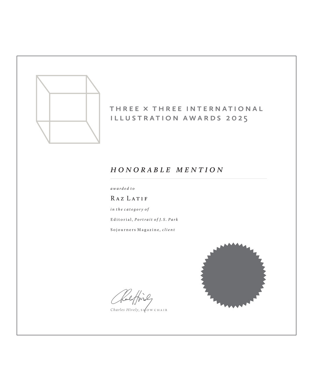 Excited to share that my illustrated portrait of J.S. Park for Sojourners Magazine received an Honorable Mention in the 3x3 International Illustration Awards 2025!