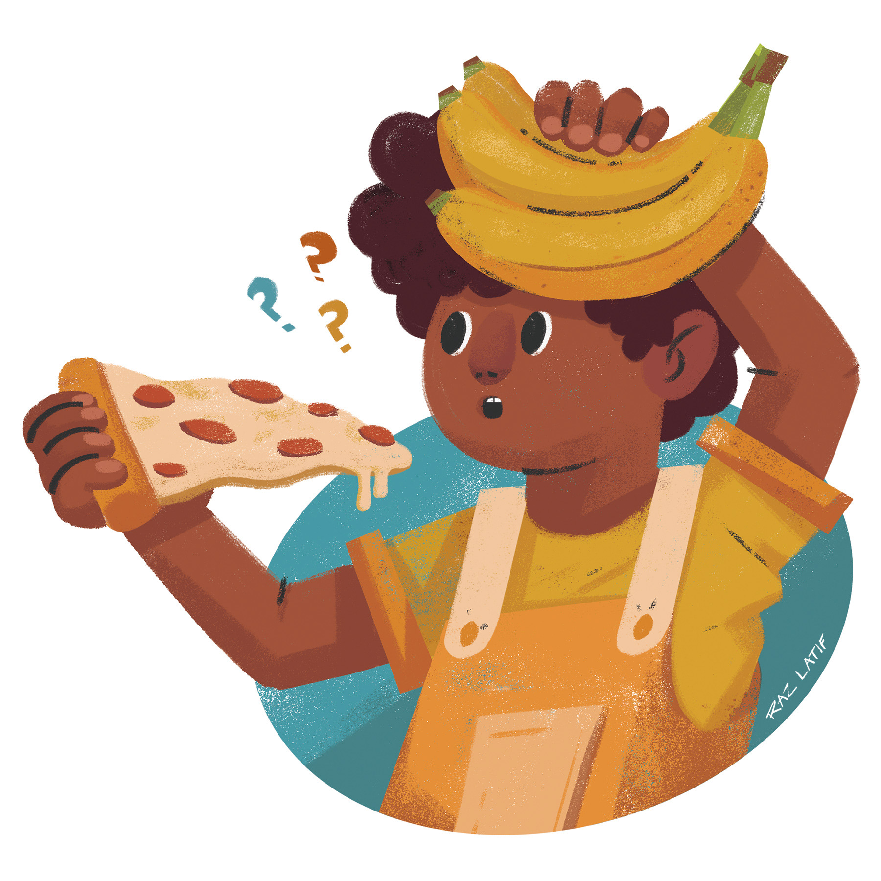 Spot illustrations supporting an activity/joke spread.