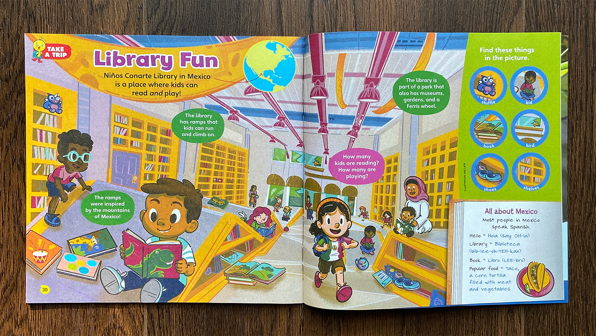 Full spread library illustration of Niños Conarte (located in Monterrey, Mexico).