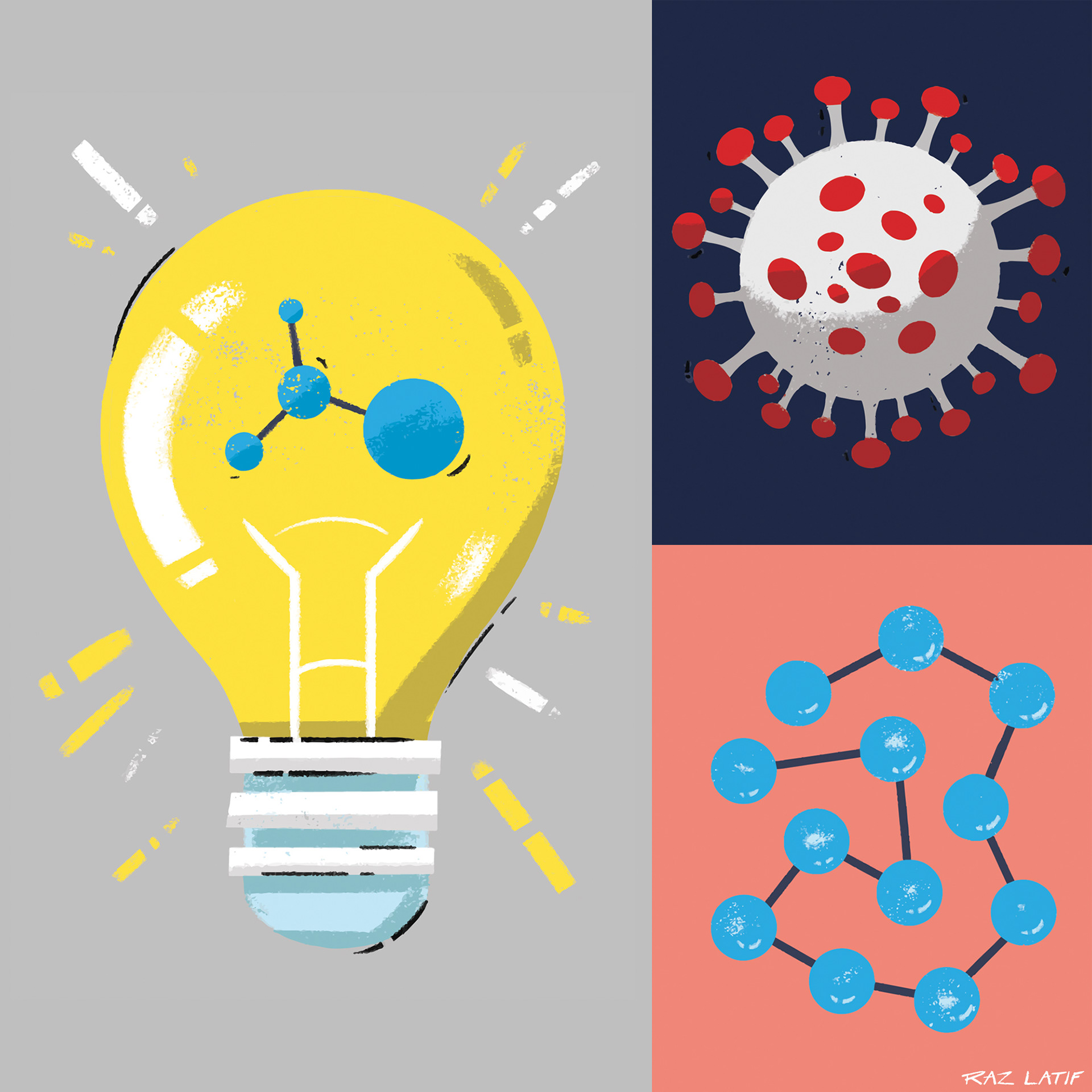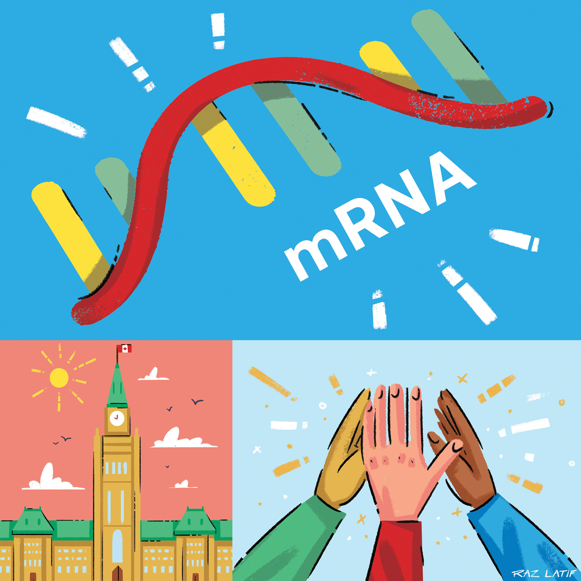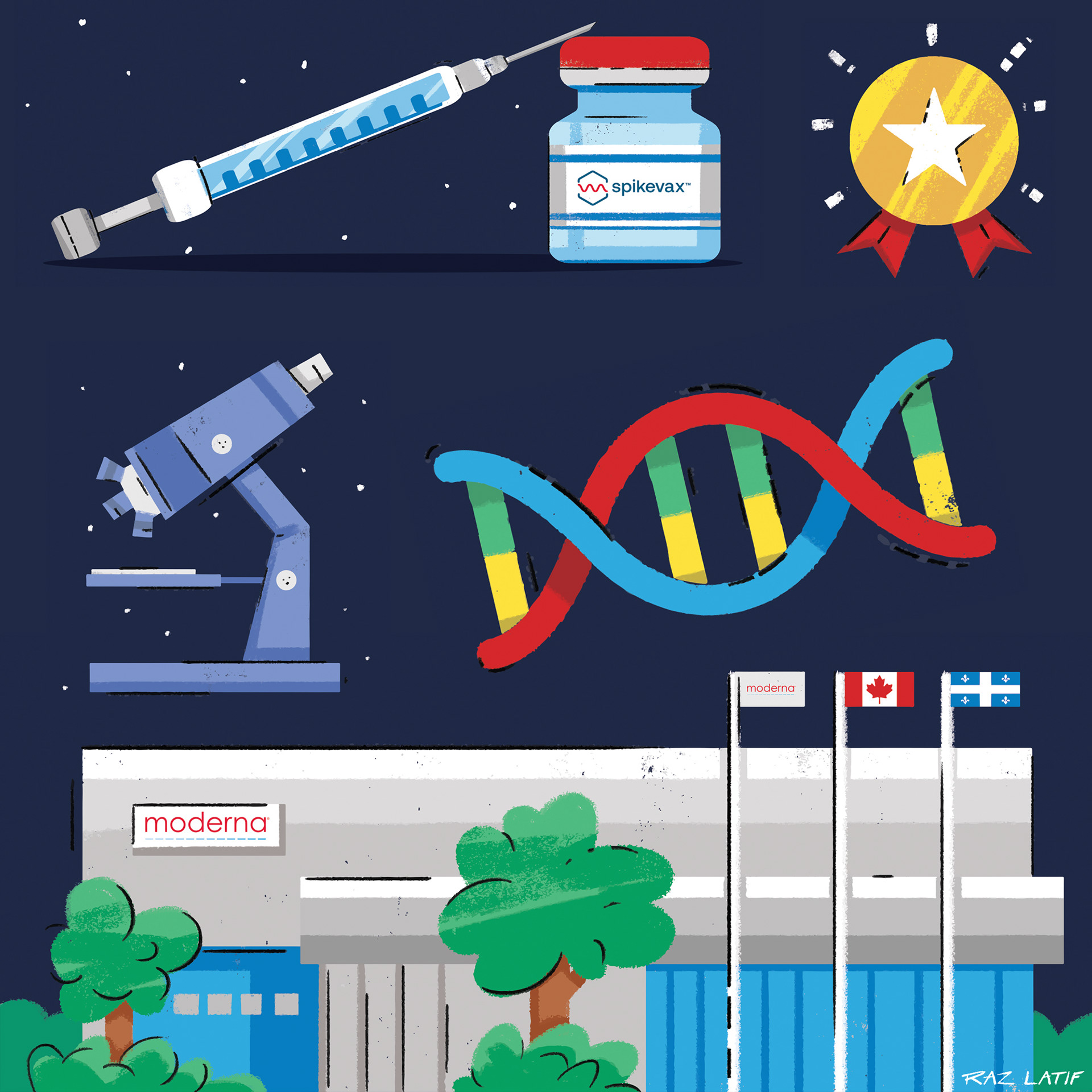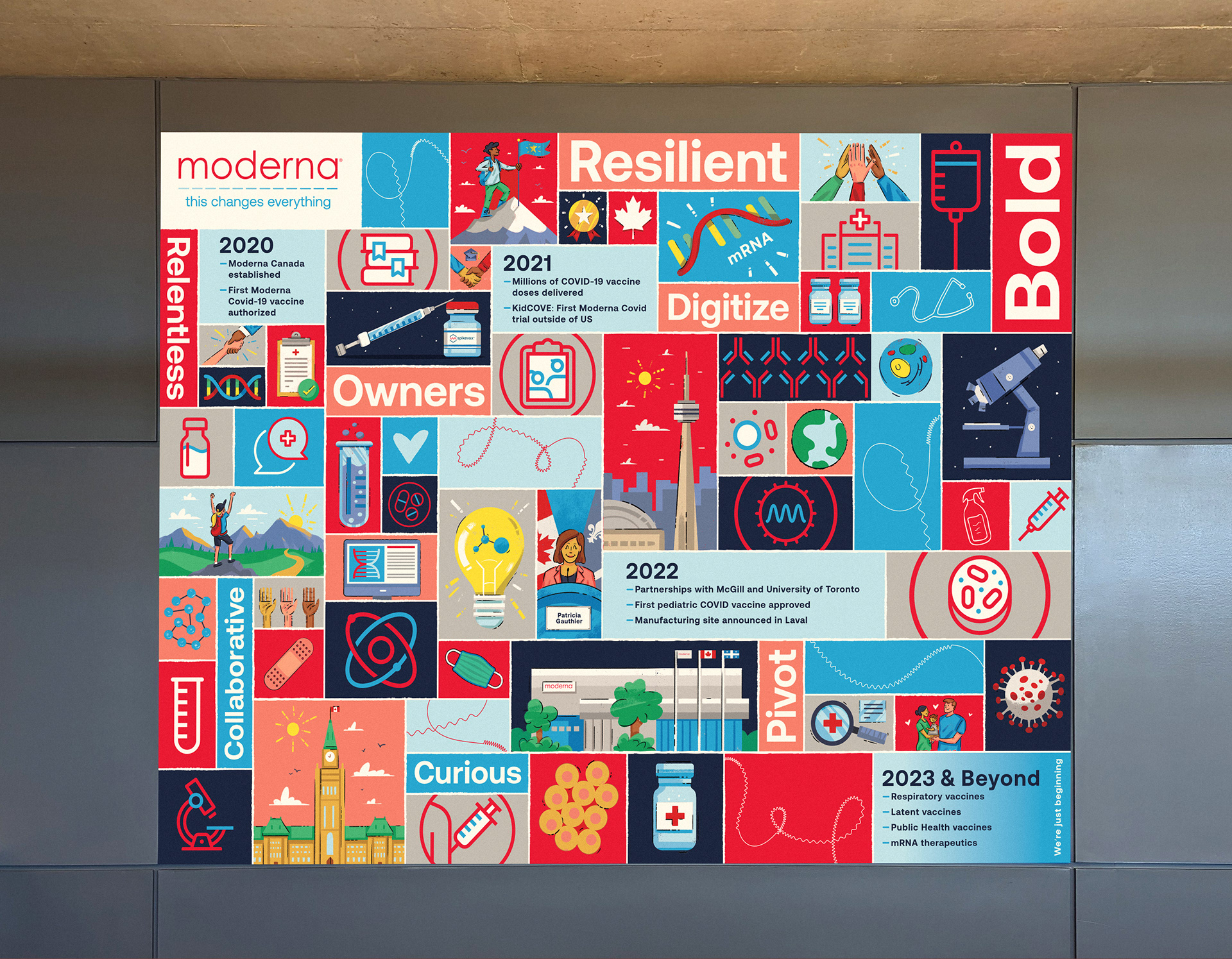 Original illustrated assets created for the mural at Moderna's new Canadian head office.