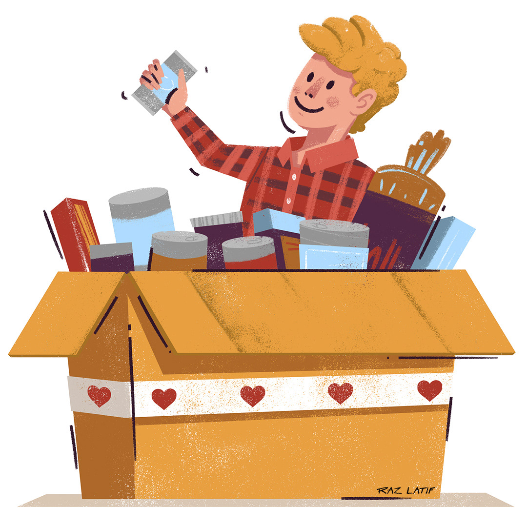 Various spot illustrations supporting a article about choosing the best charity for you during the holidays.