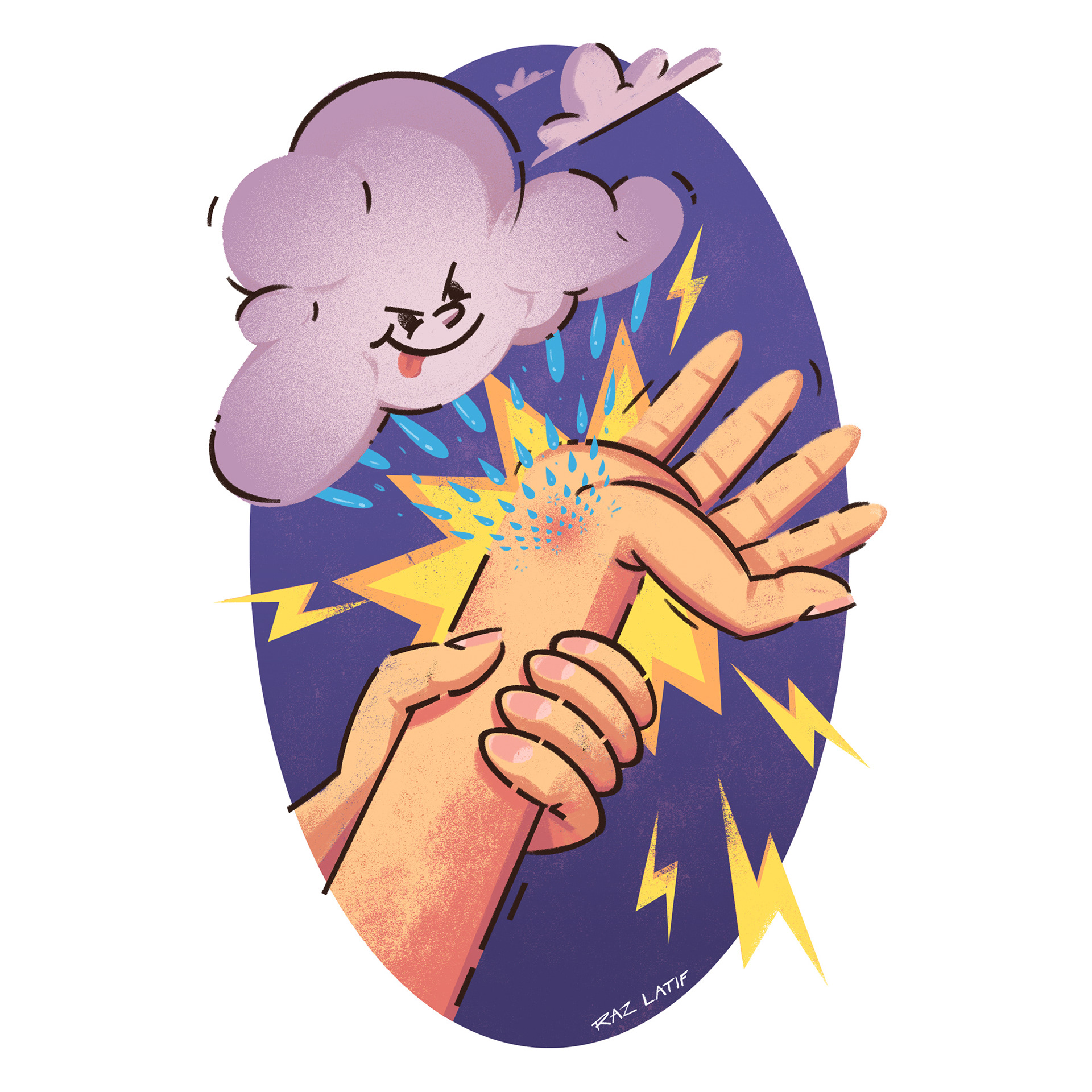 Spot illustration supporting an article — The truth about rainy days and our health.