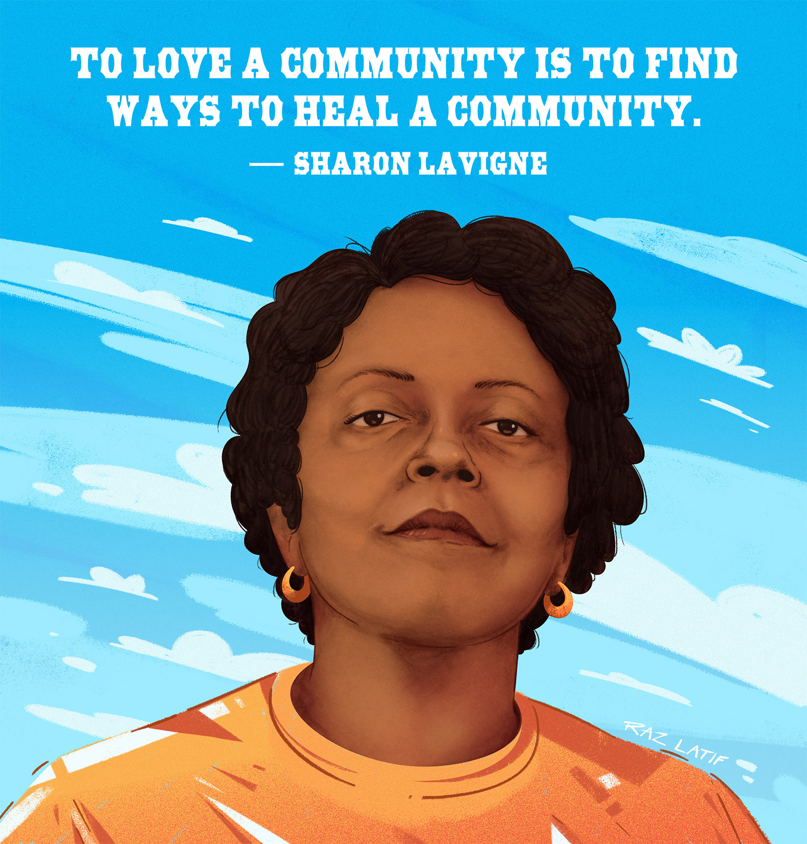 Portrait of activist Sharon Lavigne and her quote.