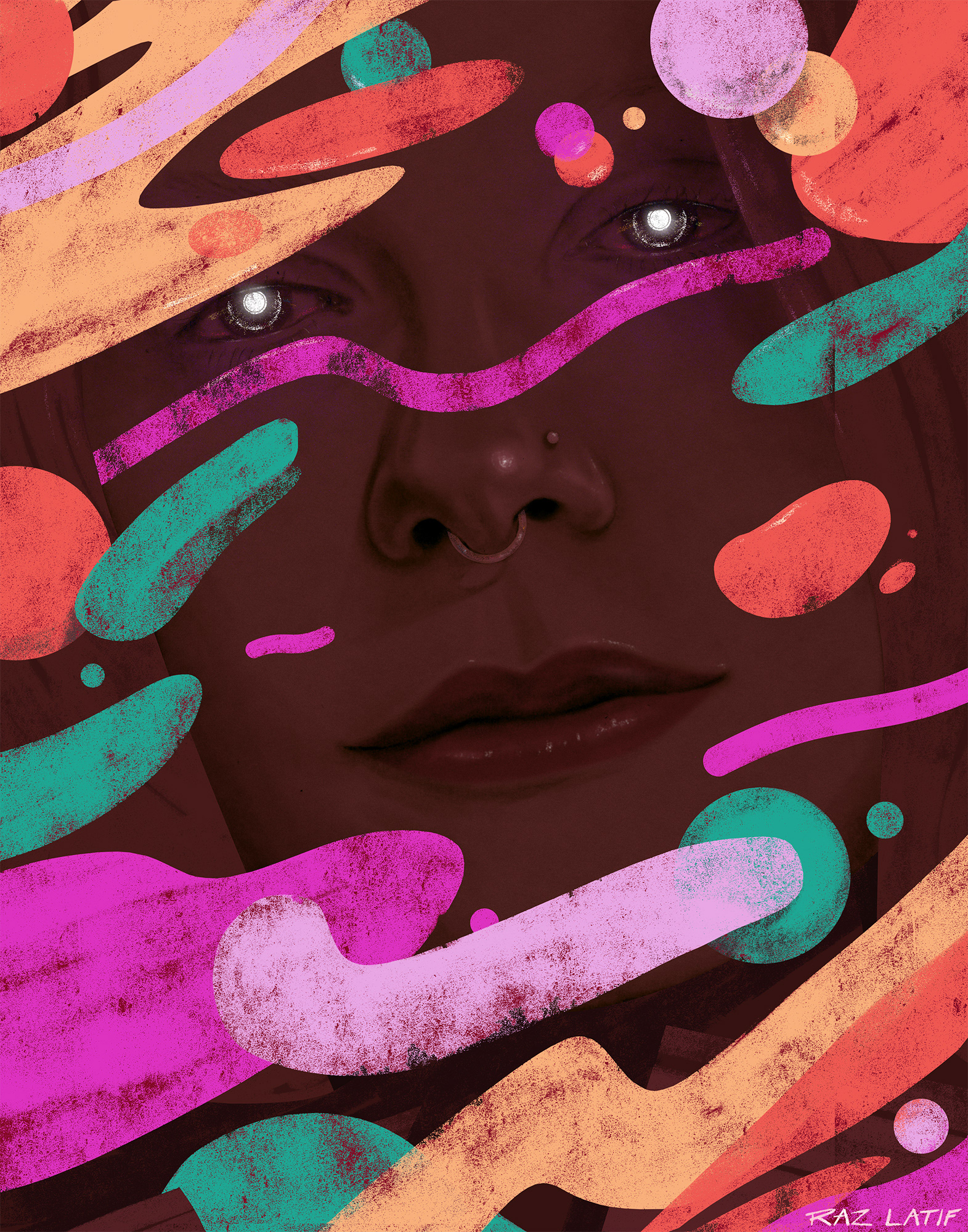 Hand-drawn portrait (graphite, pastel), Digital Mixed Media